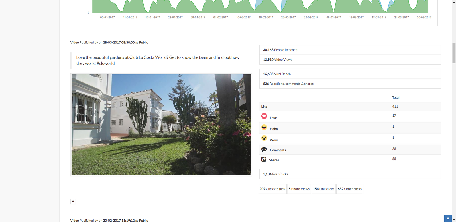 It also tracks ‘reach’ over a specifiable time period, translating results into sleek-looking graphs and numerical diplays. The tool then gives the administration the ability to select particular posts,usually based on performance, and display them in a report.